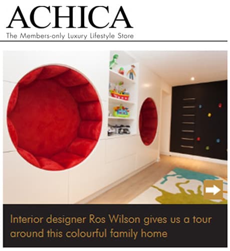 Featured in the press: Luxury interior designer Roselind Wilson gives Achica Living a tour around this colourful family home in Holland Park.