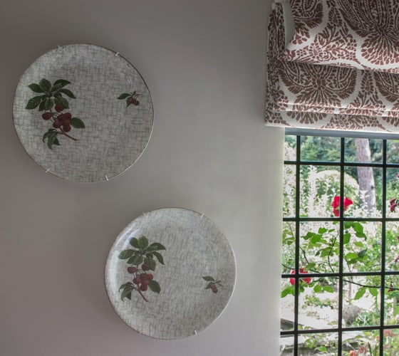 In our Richmond project, we positioned these beautiful plates from our client’s collection in the informal living room where the elegant design complements the delicate pattern on the fabric of the roman blinds.