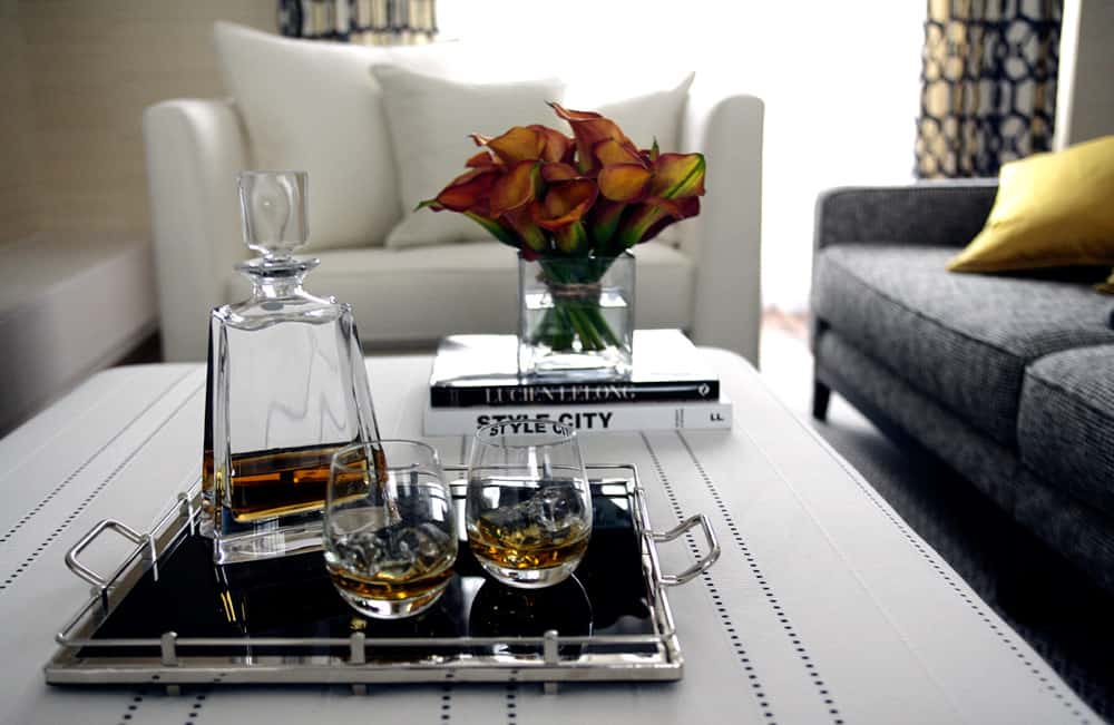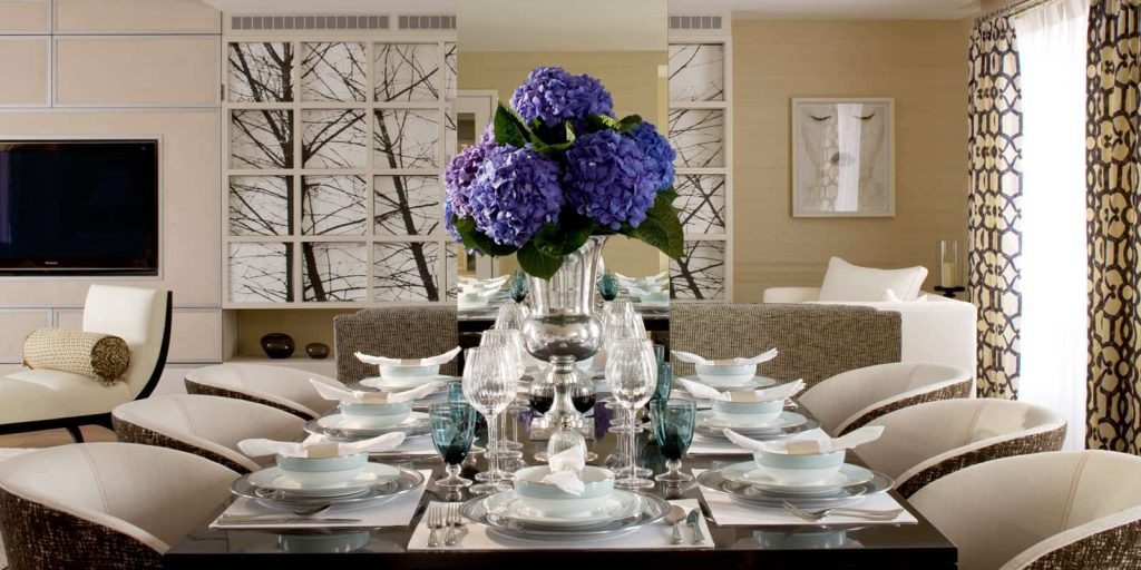 Attention to detail can be seen in the use of the patterned fabric of the curtains being elegantly mirrored in the design of the metal screens. As an extension of this idea, patterned curtains offset the plain upholstery fabrics to create layers and textures. Artwork and accessories hint at an Eastern influence to satisfy the broader target market, yet the interior is undoubtedly London.
