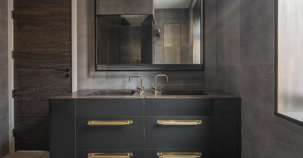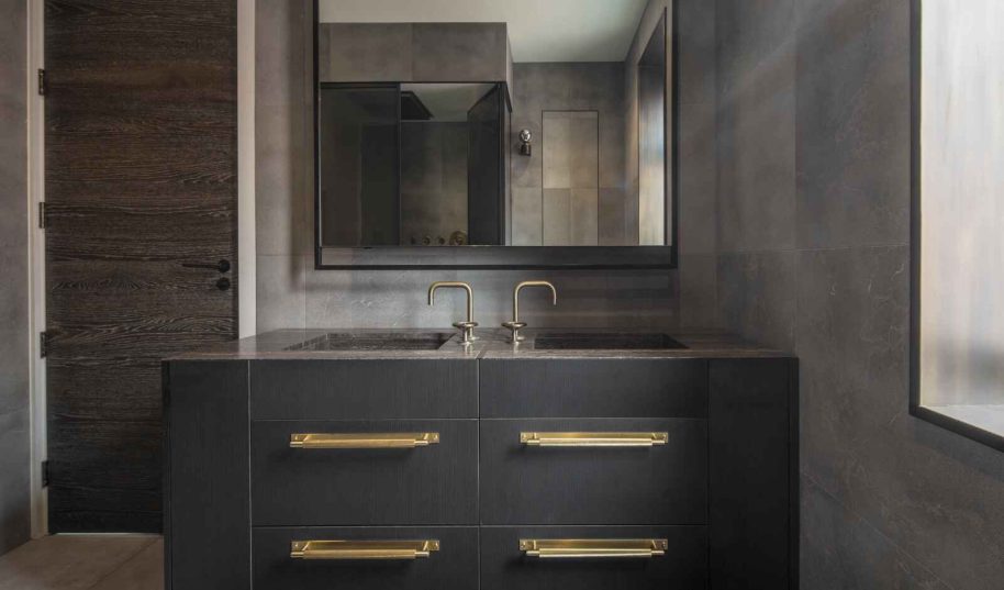 The design of the bathrooms were a particular triumph, where a focus on rich textures and sophisticated finishes take centre stage to display a prevailing appreciation of style and natural beauty. All savvy bathroom designs start with a key focal point and in the design of both the master bathroom and guest bathroom, we combined a striking bespoke vanity with dramatic light fixtures and lavish textures to deliver a statement bathroom that showcases a timeless, contemporary, industrial-luxe style.