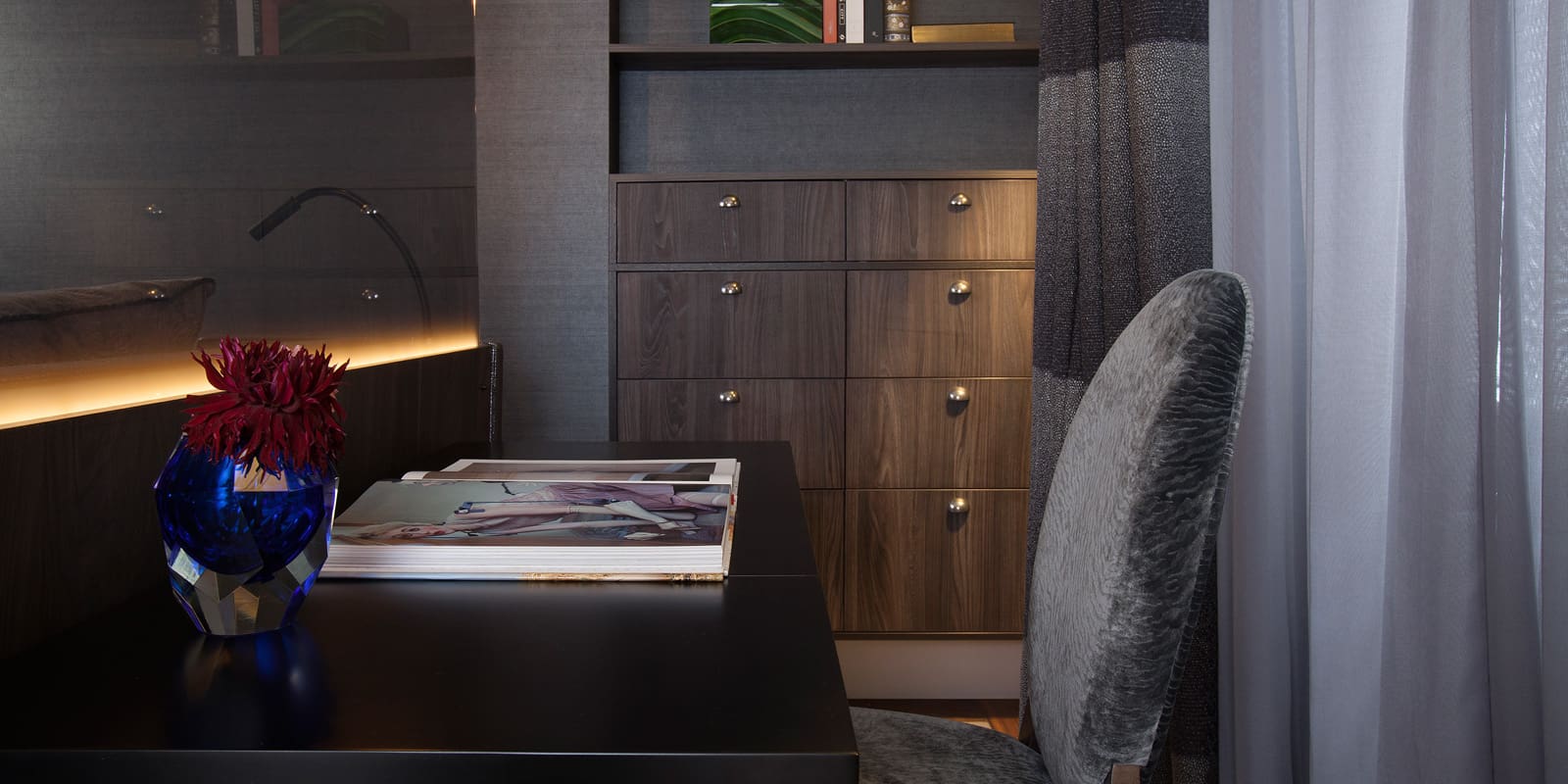 Buckingham Street is a 1,368 square foot Lower Ground Floor pied-a-terre for an international client who resides primarily in a sun-drenched climate and as a result, wanted this property to be a cocoon-like London residence taking full advantage of the conservative sunshine and cosier weather. The brief for the interior design scheme was to utilise a colour palette of grey, taupe and champagne together with textured materials and finishes to create a striking ambient effect.