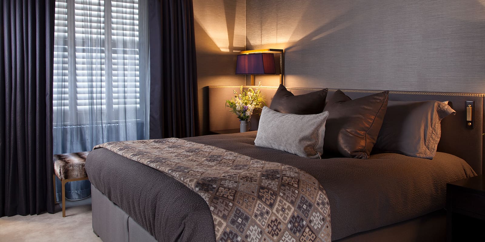 Textured wall papers, metallic finishes, bamboo rugs and faux fur throws were used to create this mood, further enhanced by ambient lighting and decorated ceilings. All furnishings are bespoke and ensure the delicate balance between function and aesthetic.