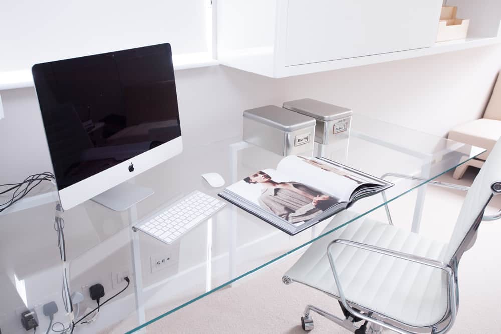A fresh, contemporary, stylish workspace with plenty of shelving and storage at high level in our Holland Park family home. Clean desk, clear mind!