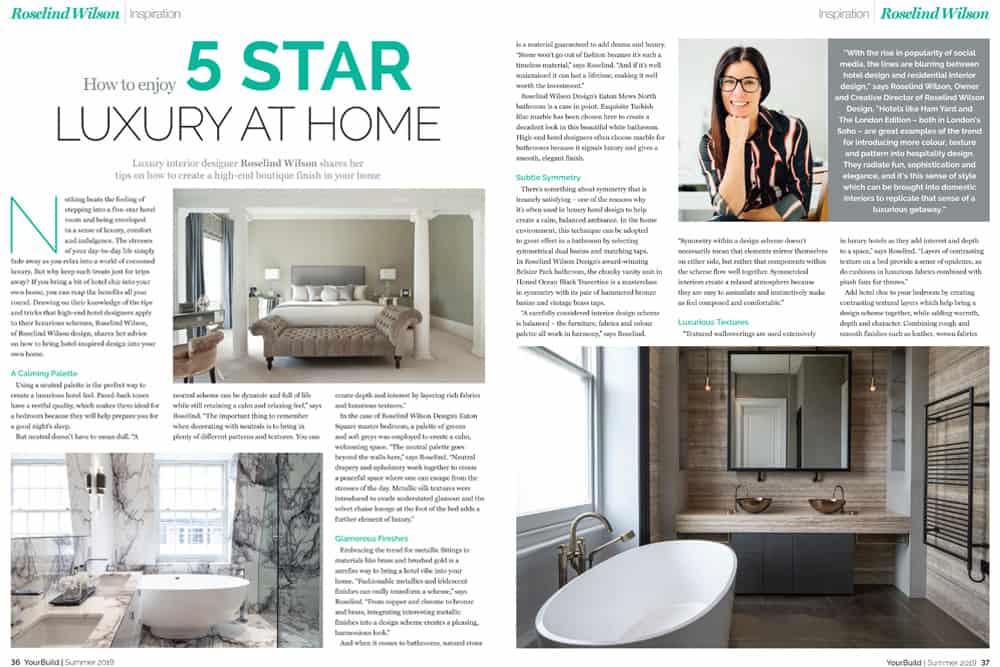 Nothing beats the feeling of stepping into a five-star hotel room and being enveloped in a sense of luxury, comfort and indulgence. Drawing on our knowledge of the tips and tricks that high-end hotel designers apply to their luxurious schemes, we share tips on how to create a high-end boutique finish in your home in the latest issue of Your Build Magazine.